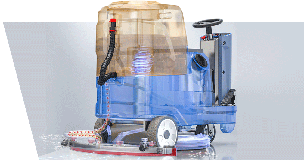 揚子洗地機YZ-X10,“坦克”動力污漬克星,洗擦吸三合一,采用新款進氣設計,達到水汽分離效果,防止出現堵塞。